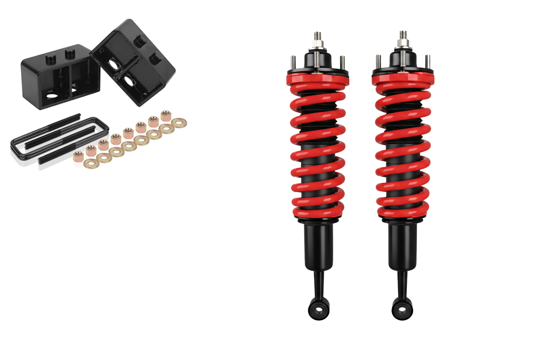 Red Black 2 inch Lift Kit Shocks, Springs & Rear Blocks Package for Toyota Hilux 2005-Current